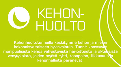 Kehonhuoltotunneilla keskitymme kehon ja mielen kokonaisvaltaiseen hyvinvointiin. Tunnit koostuvat monipuolisista kehoa vahvistavista harjoitteista ja aktiivisista venytyksistä, joiden myötä ryhti, tasapaino, liikkuvuus ja kehonhallinta paranevat.